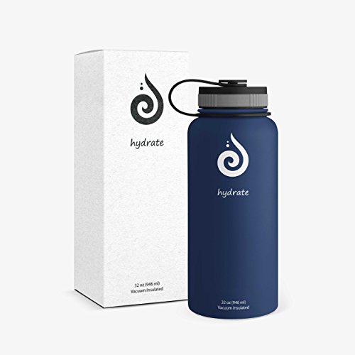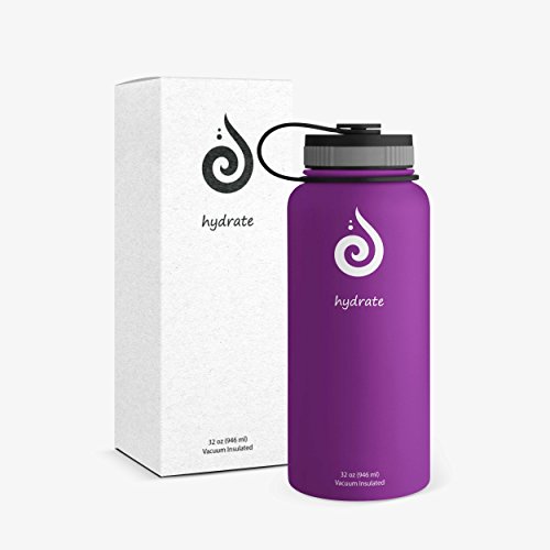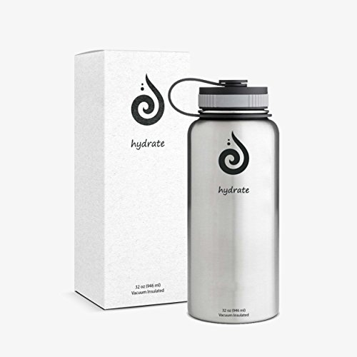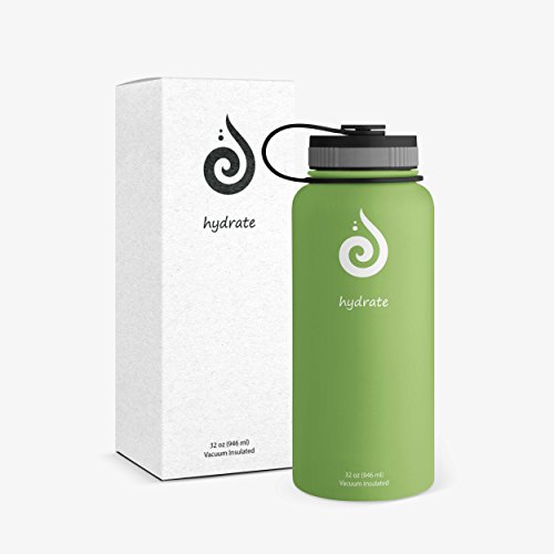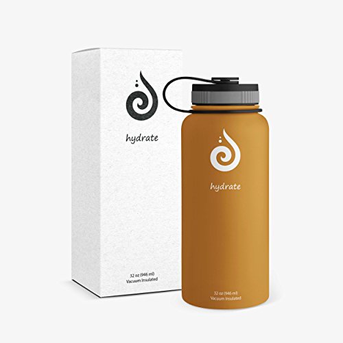 1. Hydrate Stainless Steel Water bottles have a revolutionary technology which keeps your liquids cold for 24 hours and hot for up to 12 hours. 2. The double wall insulation prevents condensation from ever forming which insures that this bottle will not sweat. This will also keep your bottle comfortable to hold. 3. The deep groove seal technology with a BPA free silicone seal ensures that your Hydrate water bottle does not leak. 4. The powder coating not only looks great but helps keep your bottle durable while adding a slip-free grip. 5. The 18/8 pro-grade Stainless Steel is crafted from food grade stainless Steel which is BPA free and FDA approved.Feature