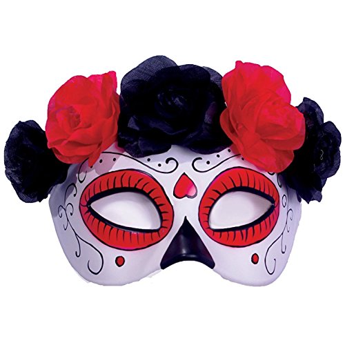 -. Title : Day of the Dead Half Mask with Attached Flowers