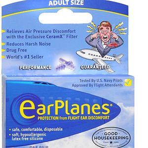 This pack contains three pairs of disposable EarPlanes. Each good for one round-trip flight. Also great for mountain driving.