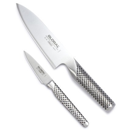 -. Feature : Manufacturer: Global / Includes: 6" chef's knife; 3" paring knife / Material: Stainless steel / Care: Hand wash only / Dimensions: 6" blade (chef's); 3" blade (paring)