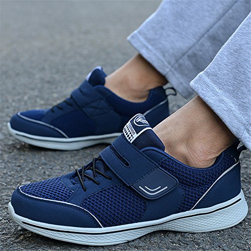 Product Description Toe style: Round toe Closure: Lace-up and Velcro Sole material: EVA Lining: Textile Upper material: Breathable mesh Heel: Flat Gender: Men Style: Casual