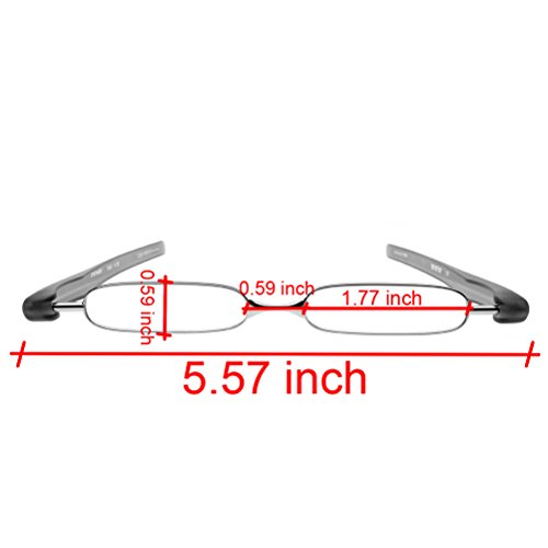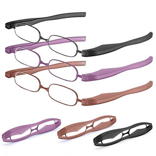 -. Feature : Fashion & stylish eyewear for men or women, suit most kind of face / Material: High-quality Aluminum Frame, Plastic temple and Resin Eyeglasses / Strength: +1.00 / +1.50 / +2.00 / +2.50 / +3.00 / Color: Black / Purple / Camel (Orange) / Package includes: 1x rotatable slim folding reading glasses + 1x Black Protective pocket pouch + 1x Cleaning Clot