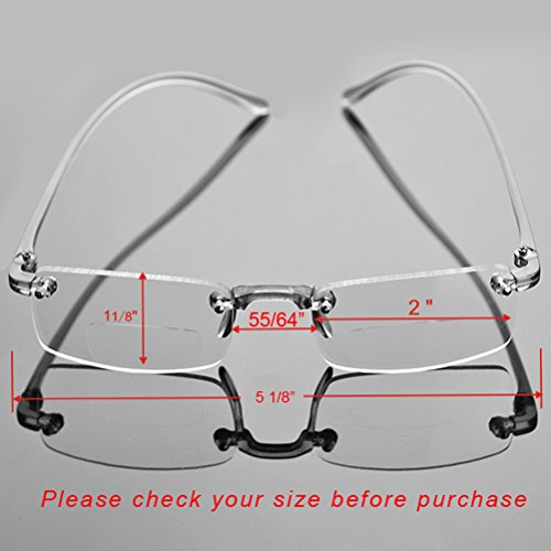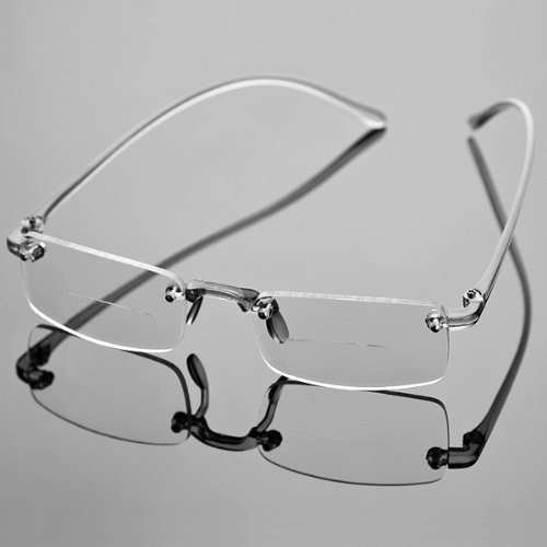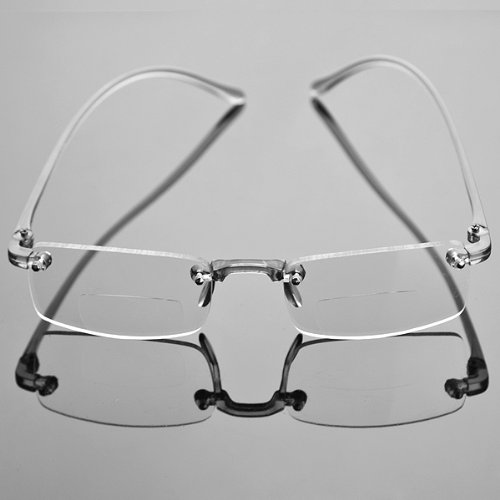 -. Title : 1X Bifocal Fashion Stylish Lightweight Clear Frameless Reading Glasses with Protective Hard Case +1.50