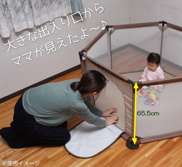 | ソフトメッシュ素材と、丈夫で軽量なアルミパイプを使用したベビーサークルです。扉付で出入りラクラク♪組立も簡単で、収納時にはコンパクトにまとめてすっきり片づけることができます。 |