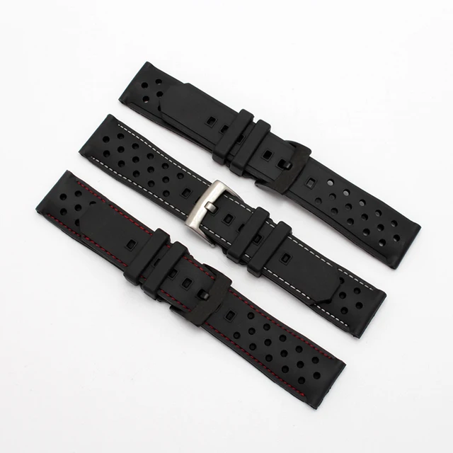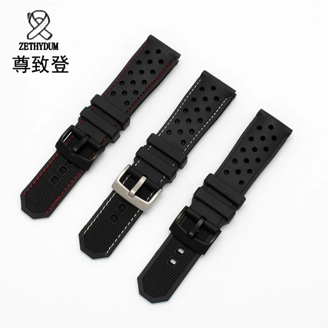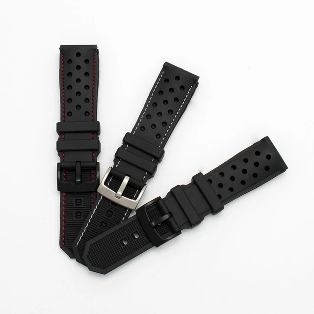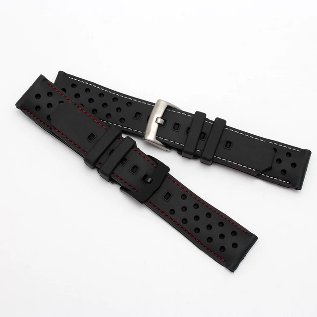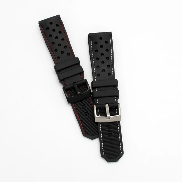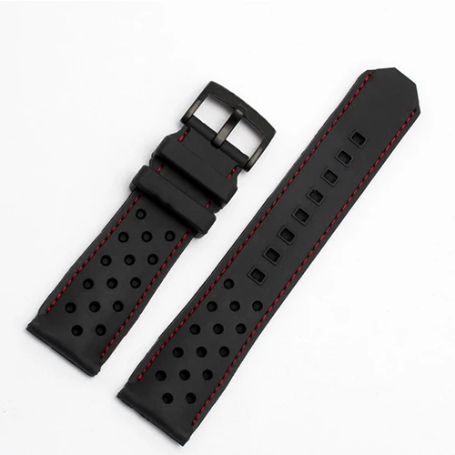 | [해외] 품질 실리콘 손목 22 미리메터 블랙 방수 팔찌 교체 고무 스트랩 |