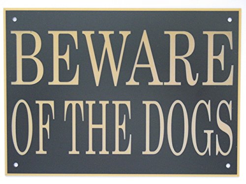 7in x 5in ACRYLIC BEWARE OF THE DOGS SIGN IN BLACK WITH GOLD PRINT …