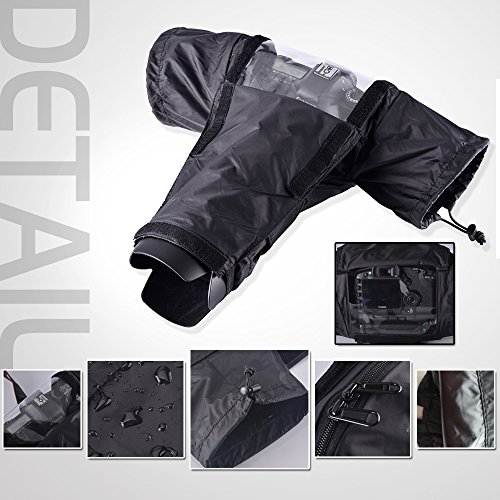 • カメラレインカバーの袖口に手を入れて、カメラを操作することができ、ズームとレンズの調整なども簡単にできます。 • 適用カメラレンズ:70-200mm、80-200mm、100-400mm、150-500mmなど。 • 雨からカメラを守るグッズ。軽量素材で仕上げた防水防塵機能の一眼レフ レインジャケットです。大雨天気にも対応できるレインジャケットです。 • レインジャケットの透明部分からカメラ液晶画面を確認することができます。カメラレインカバーを外さなくても三脚をセットできます。 • 絞まり具合が調節可能で、レンズ調整、展開や収納など簡単に操作できます;収納バッグ付き、持ち出すのが便利。Feature