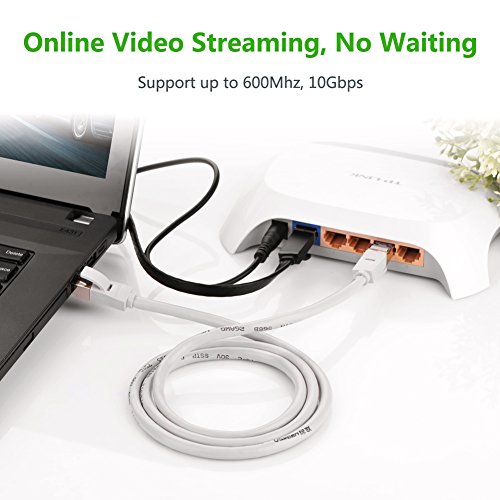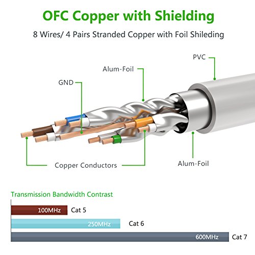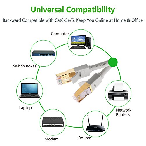 SHIELDED FROM INTERFERENCE: Made of 4 shielded twisted pair (STP) of copper wires with two RJ45 connectors on each end. Compared to the Cat 6 network Ethernet cable, the additional shielding and improved quality in twisting of the wires provides better protection from crosstalk, noise, and interference that can degrade the signal quality
