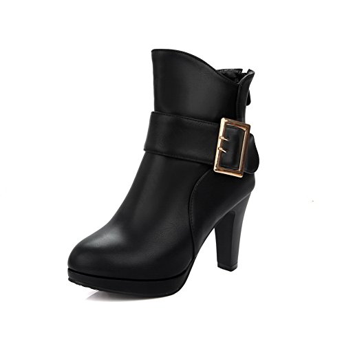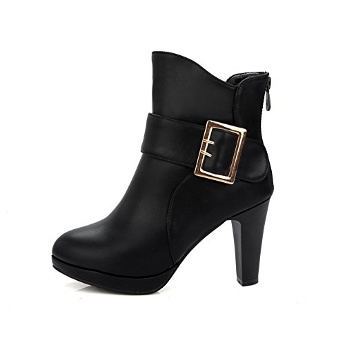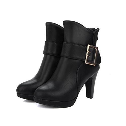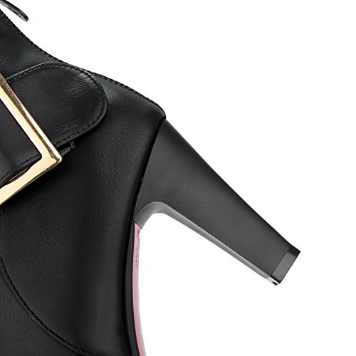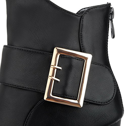 (BalaMasa)/Women's/Lace-Ups/DIRECT FROM USA/BalaMasa Womens Tuxedo Metal Buckles Ankle-High Urethane Boots ABL10498