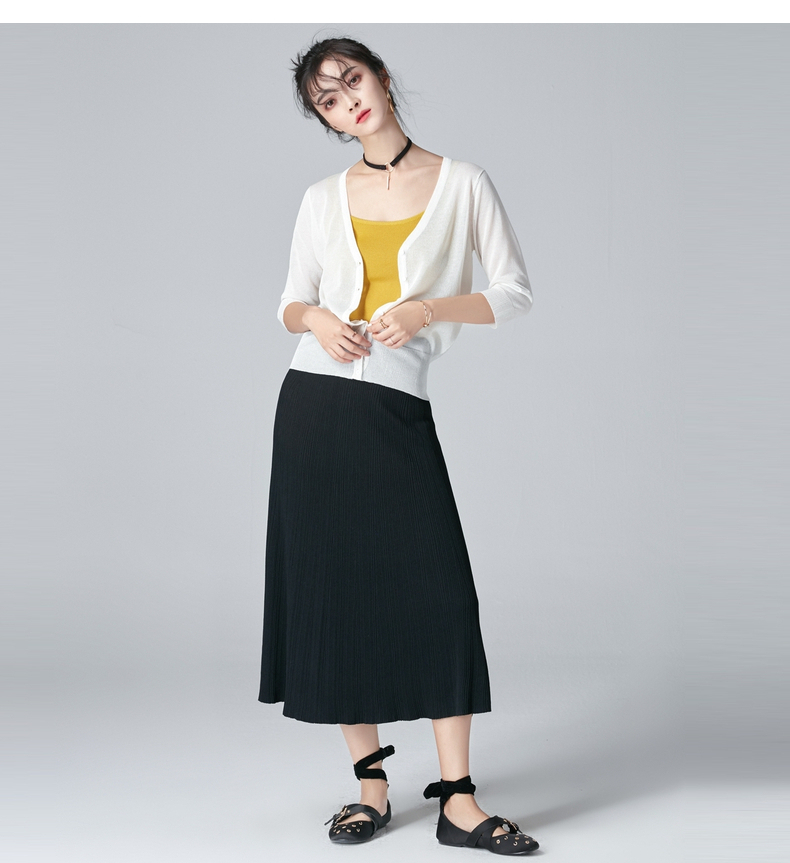 潔いシンプルさで、すっきり着こなせる7分袖カーディガンです♪デニムパンツやその他のアイテムを辛口色で揃えればカジュアルに転びすぎず大人っぽく仕上がります★ミディ丈の暗めのスカート・パンプスなんかと合わせて、よりオシャレな着こなしを★