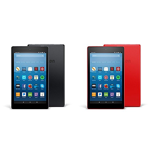 -. Feature : Contains one Black and one Punch Red Fire HD 8 (16GB). / The next generation of our best-reviewed Fire tablet, with up to 12 hours of battery life, a vibrant 8" HD display, a 1.3 GHz quad-core processor, 1.5 GB of RAM, and Dolby Audio. More durable than the latest iPad. / Now with Alexa, for quick access to the information and entertainment you want. Ask questions, play music, check your calendar, get the news, weather, and more - just press the home button and ask. / Enjoy millions of movies, TV shows, songs, Kindle eBooks, apps and games - including Netflix, Facebook, HBO, Spotify, and more / P.R.Ime members get unlimited access to over a thousand books and magazines, millions of songs, and thousands of movies and TV episodes - at no additional cost / Watch downloaded videos anywhere with a P.R.Ime membership, Netflix plan, or Showtime subscription