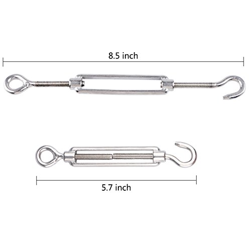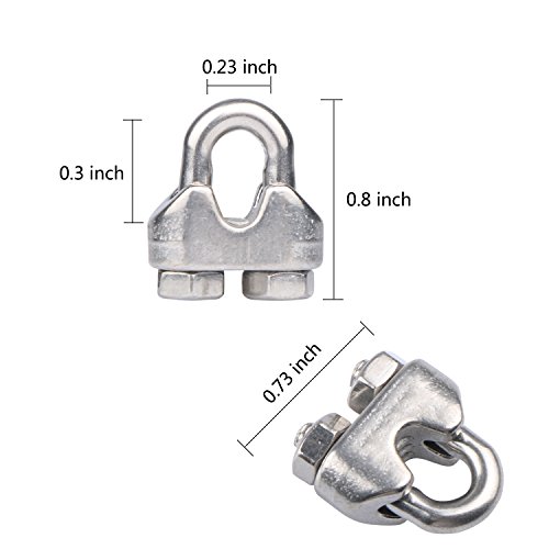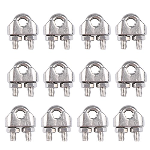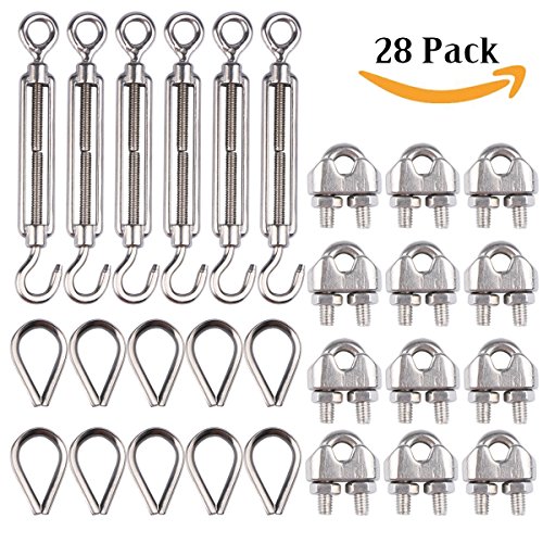 6-Pcs Turnbuckle Tension Wire Rope With Eye&Hook (M6), 12-Pcs 1/8 Inch Wire Rope Cable Clip Clamp (M3), 10-Pcs Thimble (M3), Stainless Steel Kit, Aunifun