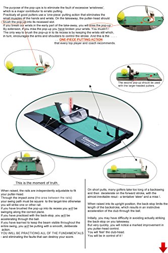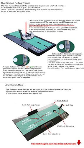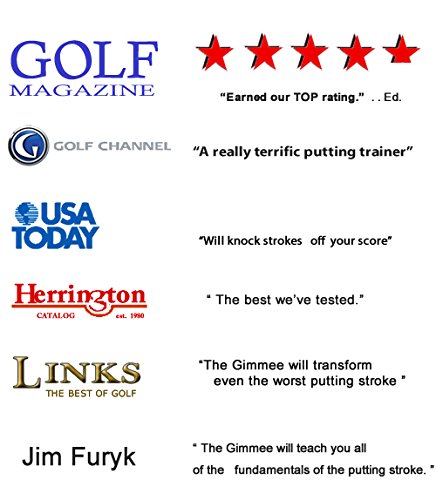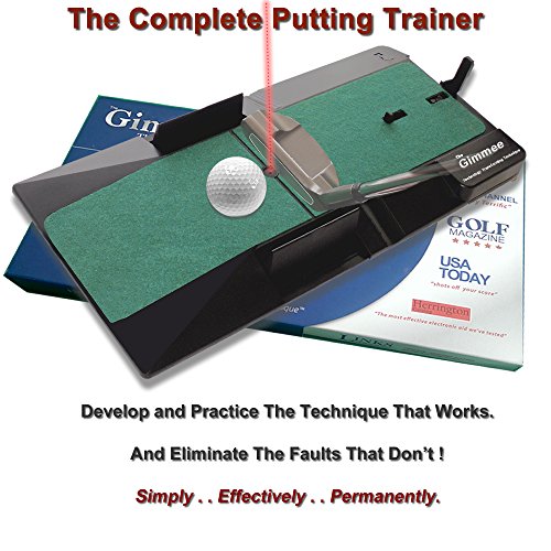 Studio : T3 Golf Publisher : T3 Golf Binding : Misc. Product Description HOW TO PUTT LIKE THE PROS. To become consistently good on the greens there are a few steps that you should take. 1. You should learn - and then practice - what are the universally-accepted principles of the putting technique. These are the foundations on which you you will build the stroke that has stood the test of time at the very highest levels of the game. 2. You MUST eliminate what is the single, most destructive fault in golf and the main cause of missed oputts - particularly the short ones. Now, for less than half the price of a mid-range putter, you can transform the critical 40% of your game with The Gimmee putting aid. PRACTICE MAKES PERFECT ? Not necessarily ! What practice does is make permanent. And if you are practicing a flawed technique you are, in all likelihood, only making matters worse. It needn't be like that. Not anymore. Now you can learn the tour-proven technique that has been used by many of the greatest putters the game has known and be confident that each practice stroke you take is actaully reinforcing the technique that works and not the faults that don't. HEAD MOVEMENT The importance of keeping your head still simply cannot be over-stated , as some of the greatest ever players attest : "Every good putter keeps the head absolutely still from start to finish. Every bad putter I know moves the head to some degree"... TIGER WOODS. . "Probably the premier technical cause of missed putts is head movement.' . . JACK NICKLAUS. " It is amazing how much even a short putt will veer off line because of a slight head movement". . . ARNOLD PALMER. You simply MUST learn to stay absolutely still when putting - if you want to be a consistently good putter. The Gimmee is the only putting trainer on the market that will teach you to eliminate even the slightest head-movement from your stroke. It's the ideal golf gift for your ideal golfer this Christmas. 0
