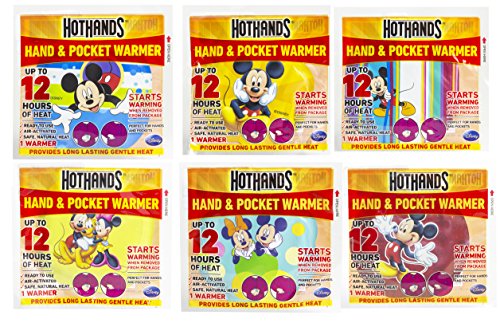-. Brand : Maurice Sporting Goods -. EAN : 0094733160001 -. Feature : Ready to use and lasts up to 12 hours / Comes in a pack of 6 total (All Assorted) / Provides long lasting gentle heat / Safe and natural heat; Perfect for hands and pockets / Starts warming when removed from package; Air-Activated -. Label : HotHands -. Manufacturer : HotHands -. Model : DHWCD320 -. MPN : DHWCD320 -. PartNumber : DHWCD320 -. ProductGroup : Sports -. ProductTypeName : OUTDOOR_RECREATION_PRODUCT -. Publisher : HotHands -. Studio : HotHands -. Title : Grabber HotHands Disney Mickey and Friends Handwarmer For Kids (Pack of 6 Assorted) -. UPC : 094733160001