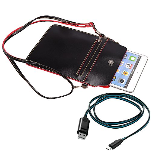 Premium PU Leather Tablet Case Pouch Crossbody Zipper Bag for iPad Mini 4 3 2 1/ Samsung Galaxy Tab S2/ Tab A/ Tab 4 3/ ASUS ZenPad & S/ MeMO Pad Fit up to 8 inch + SumacLife Cable (Black)