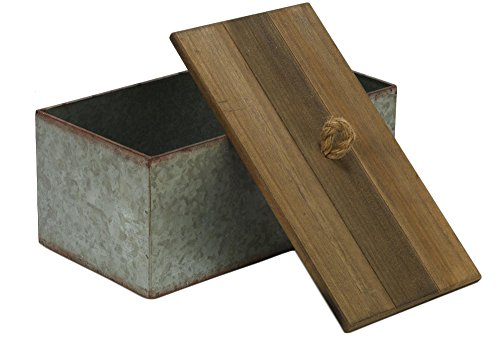 Rustic Galvanized Metal Storage Box with Wooden Lid - Country Style