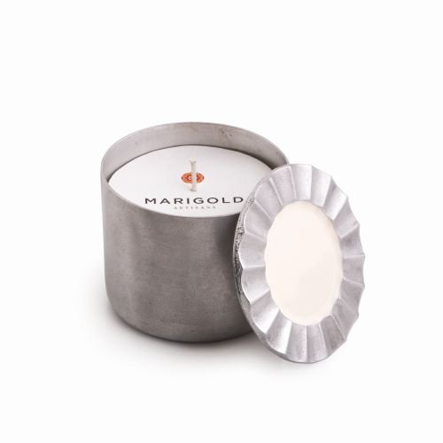 Marigold Artisans Silver/Ivory Enamel Fluted Candle