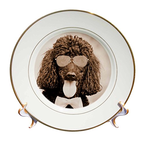 3dRose cp_218220_1 Cool Poodle Wearing Sunglasses and Bow Tie Popular Image Porcelain Plate, 8"
