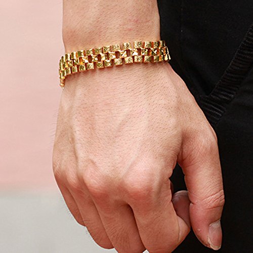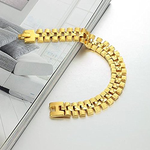 New Fashion Jewelry 18k Gold Plated Powerful Men's Bracelet Retro High Quality Wristband Chain Link Bangle, 7.28 Inch Length