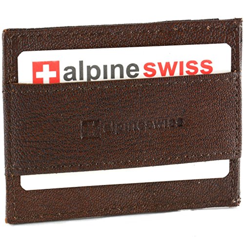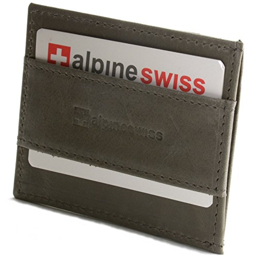 Super Slim Cash Strap  Money Clip WalletBy Alpine SwissLooking for a thin wallet which can carry all you need?  You have Found it!Colors: Black, Brown, GrayA simple wallet for everything you need with out the backpain of carrying a big wallet.  Product Features:Measures 3" x 3 5/8" x 1/4" Only a quarter inch thickCash Strap the slimmest solution to secure cashFeatures three card Slots to allow 4-6 cards or IDMade of Soft & Luxurious Lambskin Leather Semi Glossy for BlackMade of Distressed Crunch rugged & Durable Full Grain Cow Hide for Brown, Gray