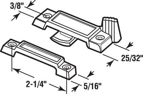 -. Binding : Tools & Home Improvement -. Brand : P.R.Ime-Line Products -. Color : White -. EAN : 0049793025333 -. Feature : Die cast construction fits aluminum vinyl or wood double-hung windows / Holds window securely closed / Universal design / 2-1/4in. hole spacing -. IsAutographed : 0 -. IsMemorabilia : 0 -. Label : P.R.Ime-Line Products -. Manufacturer : P.R.Ime-Line Products -. Model : F 2533 -. MPN : F 2533 -. NumberOfItems : 1 -. PackageQuantity : 1 -. PartNumber : F 2533 -. ProductGroup : Home Improvement -. ProductTypeName : HARDWARE -. Publisher : P.R.Ime-Line Products -. Studio : P.R.Ime-Line Products -. Title : P.R.Ime-Line Products F 2533 Window Sash Lock, Cam Action, Universal, White Diecast -. UPC : 049793025333 -. Warranty : Goods are warranted against manufacturing defects for 1 year. In no case is P.R.Ime-Line responsible for user related damage or damage incurred during installation. Warranty is void if products are subjected to abnormal conditions, misapplication or abuse.