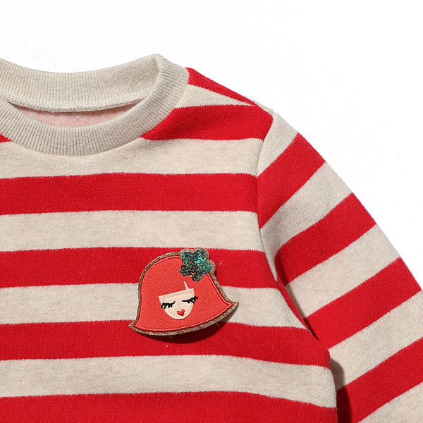 브롯지장식은 탈부착이 가능하며 옆트임을 주어 착용감이 편안한 티셔츠 입니다.