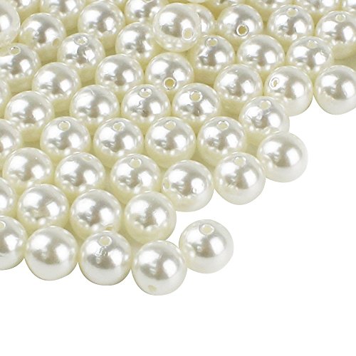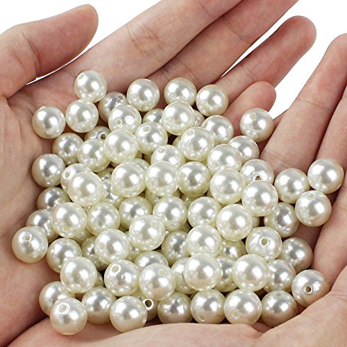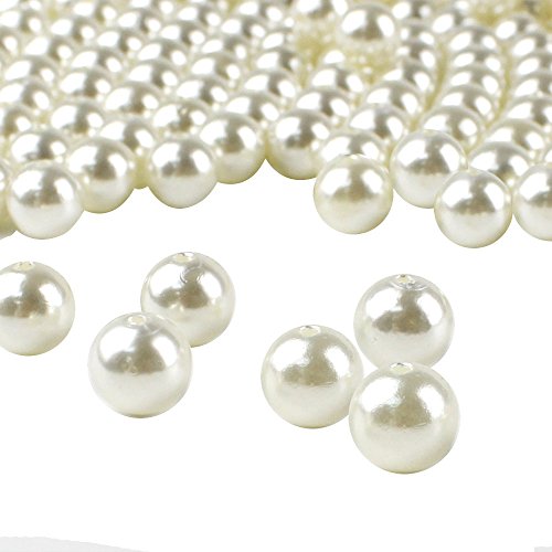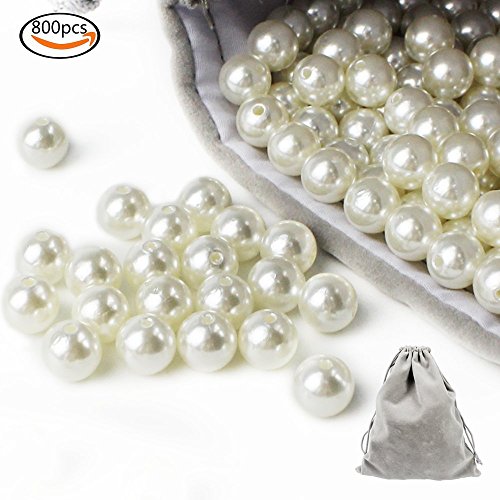 Outuxed 0.9LB/800pcs 10mm Ivory Loose Pearl Beads for Vase Fillers or Jewelry Making, with 1 Large Velvet Storage Pouch