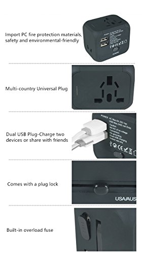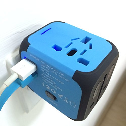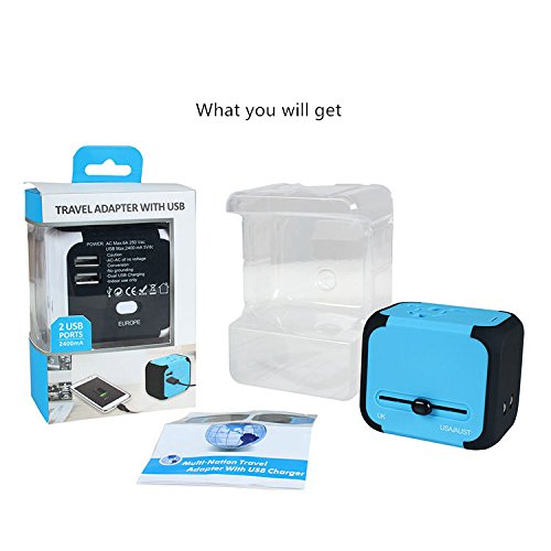 Travel USB Uppel Dual USB All-in-one Worldwide Travel Chargers Adapters International Travel Power Adapter with 2.4A Dual USB Charger & - Spare Fuse (Blue+Black),Best Partner of Travel