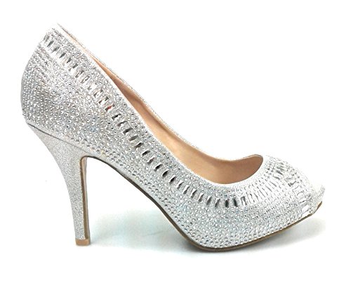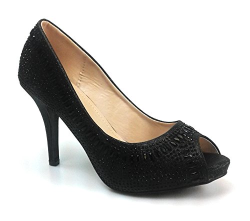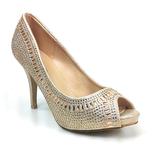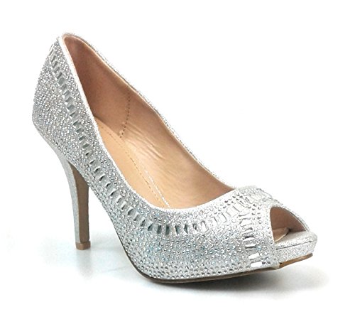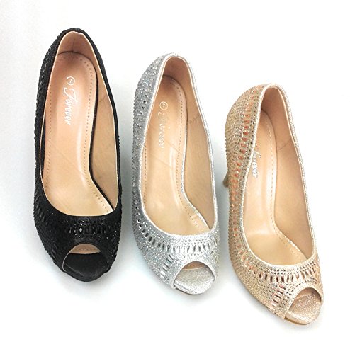 (Forever Link)/Women's/Pumps/DIRECT FROM USA/Forever Link Women's Sparkling Peep Toe Rhinestone Studded Classic Dress Pumps Bright-2