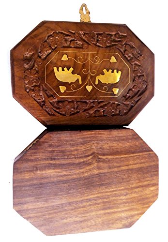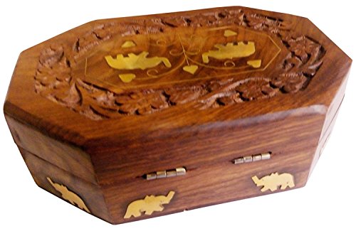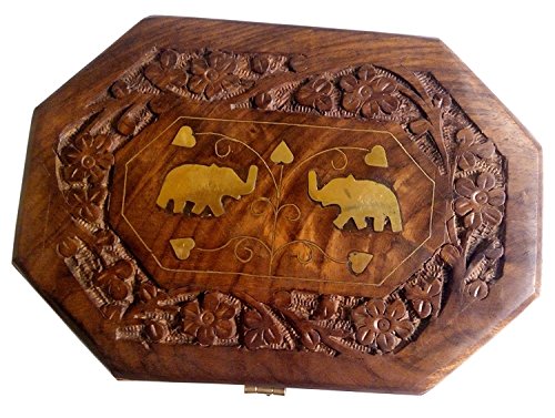 ITOS365 Handmade Wooden Jewellery Box for Women Jewel Organizer Elephant Décor, 7 x 5 Inches