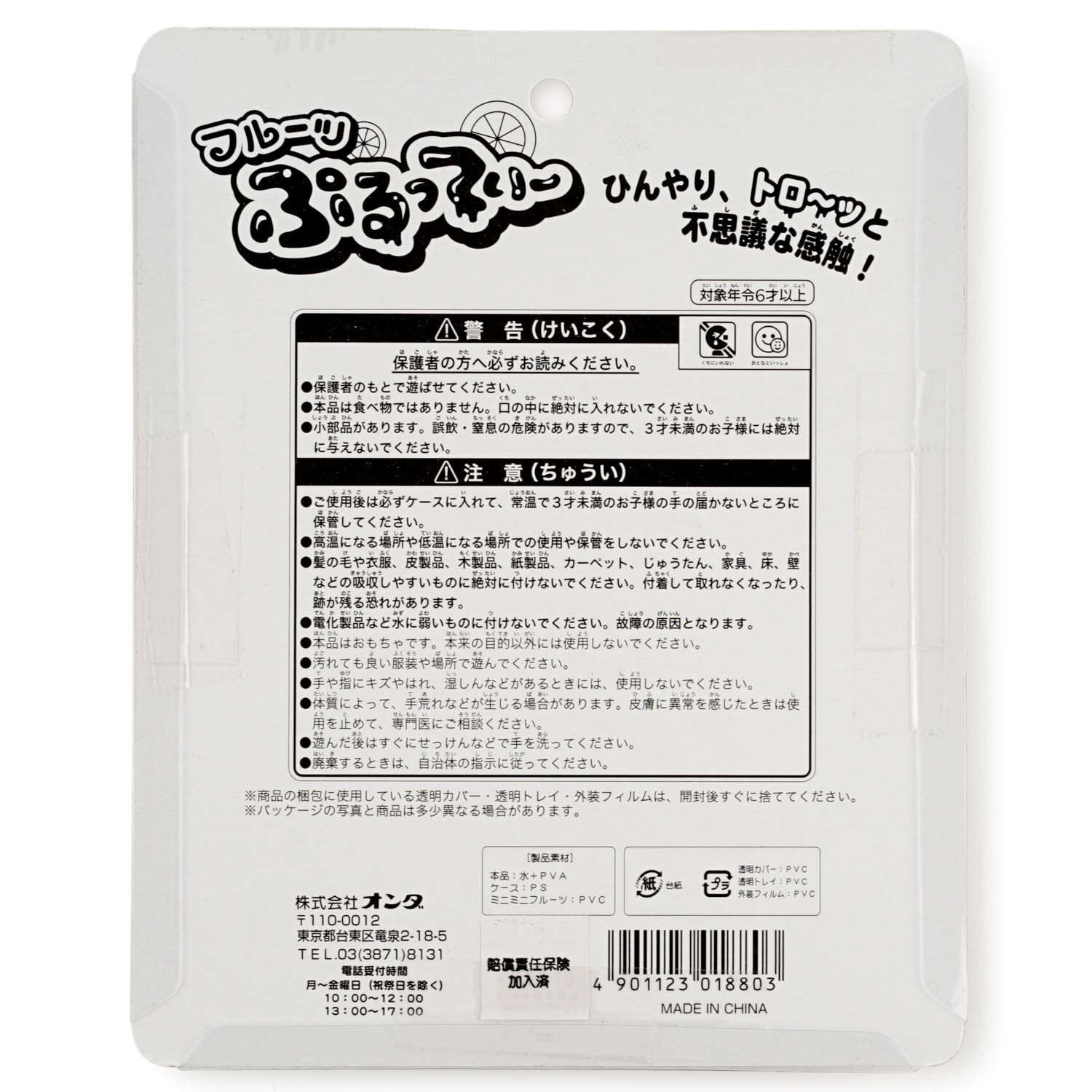 生産国:中国 素材:水、ポリスチレン、ポリビニルアルコール、PVC樹脂 対象年齢 :6才以上