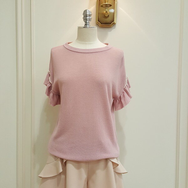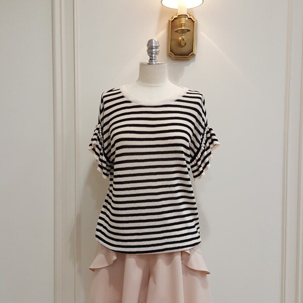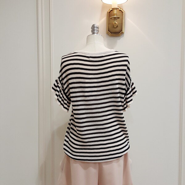 블랙은 스트라이프로 소매에 진주가 포인트