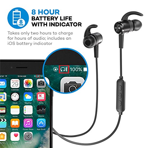 8 Hour Battery Life with iOS Indicator: Takes only two hours to charge for 8 hours of audio; includes an iOS battery indicator so you know the remaining battery life