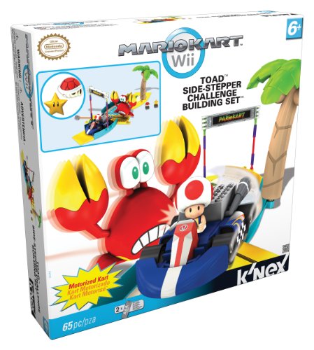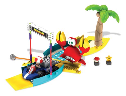 -. Feature : Build Toad in his Standard Kart / Moving Side-Stepper Obstacle / Super-fast, battery-powered motor for kart / 2 collectible items: red shell and star / Buildable, interconnectable track system