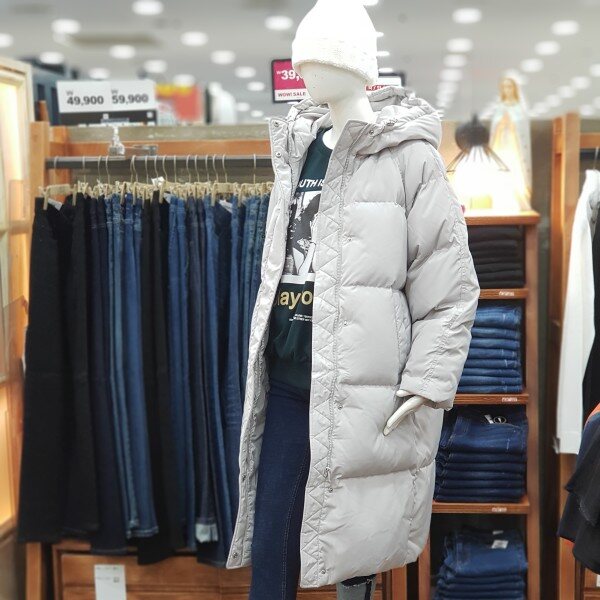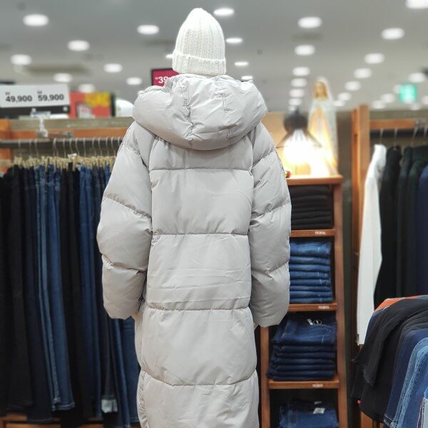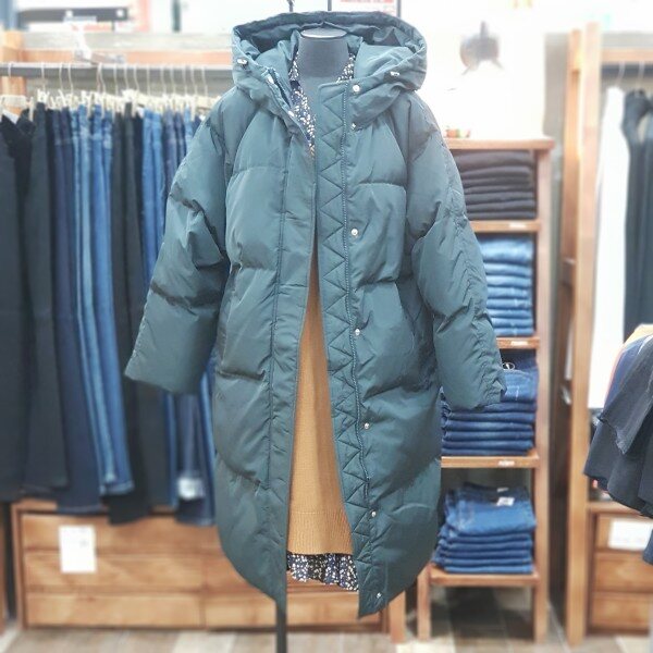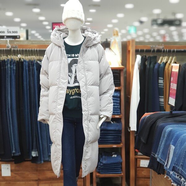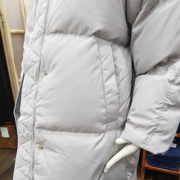 롱기장의 다운점퍼로 소매통이 넉넉하게 나와서편하고, 귀엽게 연출 하기 좋은 아이템입니다.
