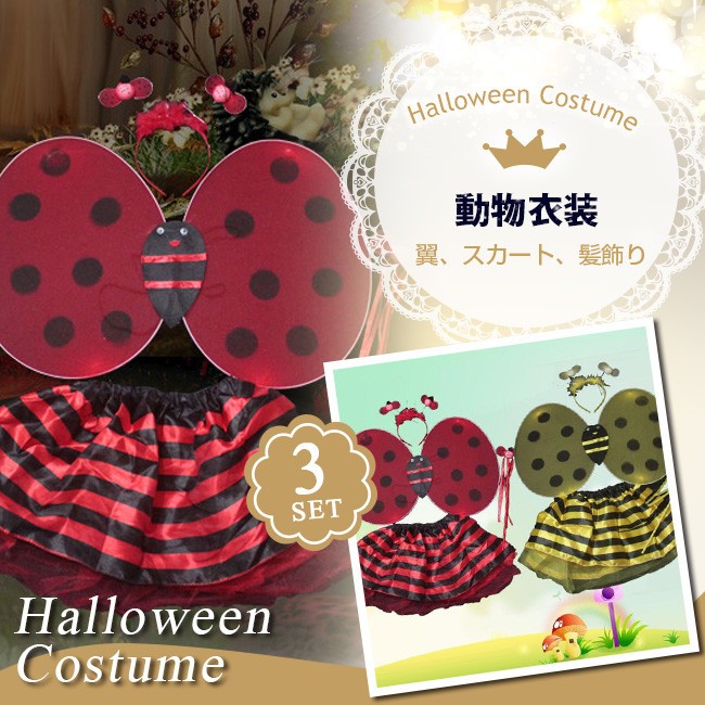 ハロウィン コスプレ 道具 衣装 セット キッズ 女の子 天道虫 フェアリー 精霊 妖精 コスチューム 翼 魔法の杖 カチューシャ スカート 仮装 変装 子供用 女児 ハロウィーン パーティーグッズ イベント用品 ステージ かわいい halloween cos
