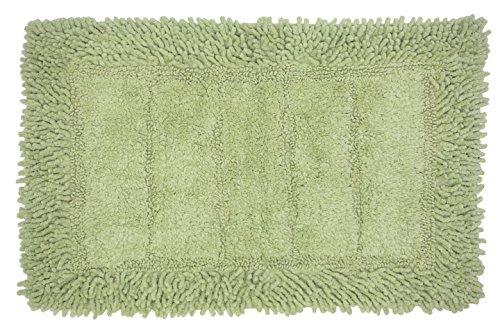 Spura Home 27"x45" Sage Shag Border W/Vertical Striped Center Bath Mat
