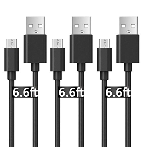 Micro USB Charger Cable for Samsung Galaxy S6, [3 Pack 6.6 FT] Extra Long Universal Micro USB Charger, High Speed Sync&Charge Cord Wire for Android - Black
