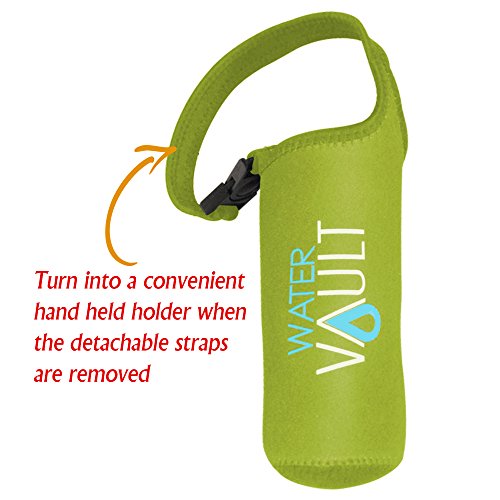 Studio : WaterVault Publisher : WaterVault Binding : Misc. Product Description Deluxe Bottle Buddy by WaterVault, Neoprene Water Bottle Holder Sling Hands free sling or hand held carrier…..the choice is yours This lightweight and super comfortable water bottle carrier has an adjustable shoulder strap that is completely detachable allowing you to clip the 2 D-buckles together creating a soft comfortable hand held bottle carrier. Patent pending design is made of premium grade neoprene that stretches and securely holds in place your favorite beverage. The neoprene sleeve can accommodate a wide variety of bottles or cans up to a 3.25” in diameter and offers a degree of added insulation which will help keep your favorite beverage cooler or warmer longer than if you were just carrying it in your hand. An added benefit is that the sling will reduce the condensation or sweating that happens with many plastic and single wall bottles in hot weather. The adjustable shoulder strap is great for fitting any size of adult and children too. Available in a variety of colors. ? Comes complete with a 90 day worry free warranty, we think you'll enjoy the ease, comfort and freedom the Deluxe Bottle Buddy provides.? Be sure to check out the added savings discounts available below under ‘Special Offers and Product Promotions’. We love our customer and we think you’ll love the Bottle Buddy.? Click the ‘add to cart’ button now and enjoy for years ahead. 0