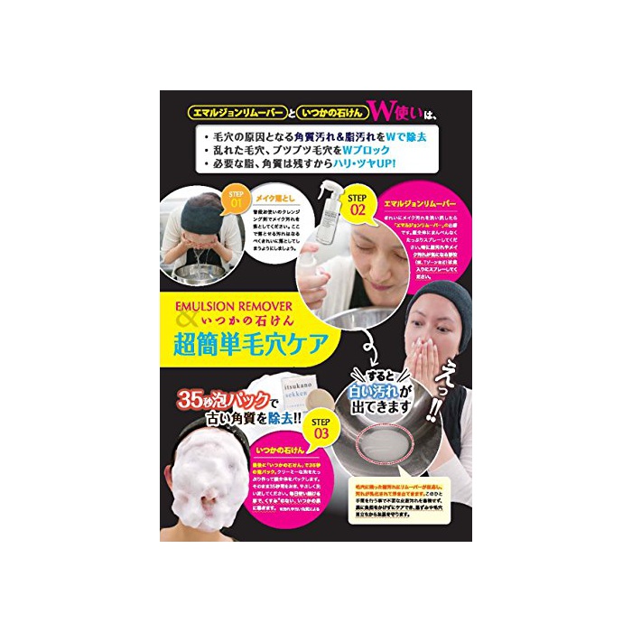 피지 얼룩이나 피부(기)안 깊숙히 가득찬 메이크나 클린싱 제를 알카리 수의 힘으로 친절하게 띄워 떨어뜨립니다