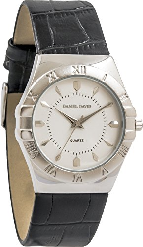 -. Title : Daniel David Women's | Silver Engraved Black Textured Leather Watch | DD13202
