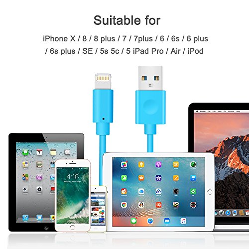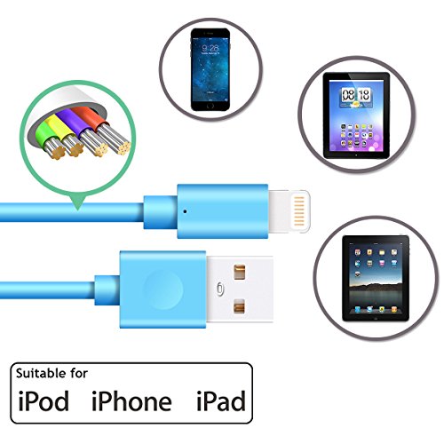 Studio : Avoalre Publisher : Avoalre Binding : Wireless Phone Accessory Product Description Avoalre 3 Pack Apple Charger Lightning Cable Blue Features: *Economical 3 Pack. *5000 bend lifespan. *Allow charging and data sync. *Conveniently use in home, work or travel. *Durable and compact with most phone cases. Specifications: Color: Blue Length: 6FT Pack: 3 Pieces Voltage: 5V 1A-5V 2.4A Suitable Devices: √ iphone 7, 7 plus, iPhone 6, 6 Plus, iPhone 6s, 6s Plus √ iPhone 5, 5c, 5s, SE, iPod Nano 7, iPod Touch 5 √ iPad 4, iPad5, iPad Air2, iPad Air √ iPad Pro, iPad mini4, iPad mini3, iPad Mini2 Warranty: 2-year warranty and 30 days money back warranty. If you have any problem(Except external factors), free to contact us at aovalreservice@hotmail.com. 0