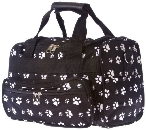-. Brand : World Traveler -. ClothingSize : One Size -. Color : Black -. Department : womens -. EAN : 0702472379775 -. Feature : Adjustable, detachable non-slip padded shoulder strap / U-top opening provides easy access to roomy zipper secured main compartment / Metal feet allows stabiity to bag when setting down and provides bag floor not to touch floor directly to get dirty / Front exterior zip pocket with two exterior end slit pockets / Silver pewter hardware -. MPN : T13-587B/W -. PackageQuantity : 1 -. PartNumber : T13-587B/W -. ProductGroup : Apparel -. ProductTypeName : LAGE -. Size : One Size -. Title : World Traveler Black White Paw Prints Duffle Bag 13-inch -. UPC : 702472379775