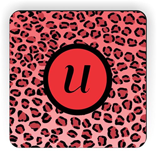 Rikki Knight Letter "U" Initial Red Leopard Print Monogrammed Design Square Fridge Magnet