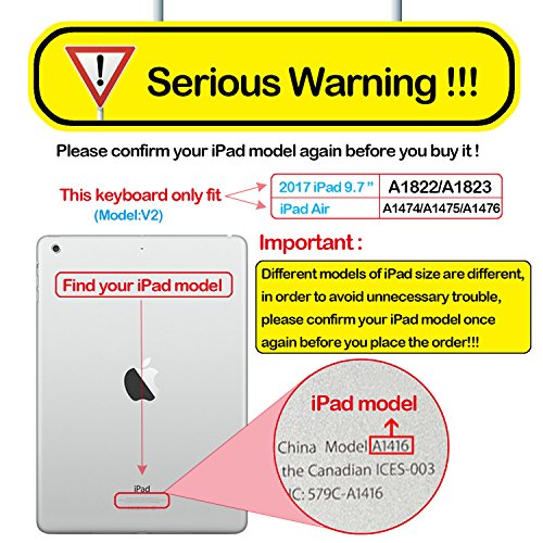 FOR 2017 New iPad 9.7" / iPad AIR - This heavy-duty & lightweight keyboard case is specially engineered for Apple 2017 new iPad 9.7 inch (A1822 / A1823) and iPad Air (A1474 / A1475 / A1476), which is easy to access all ports.