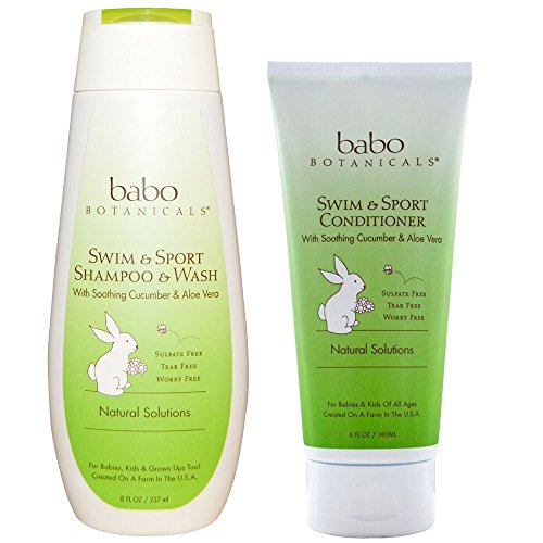 This bundle includes one 8 fl. oz. Babo Botanicals All Natural Organic Swim and Sport Aloe Vera and Cucumber Baby Shampoo & Wash and one 6 fl. oz. Babo Botanicals All Natural Organic Swim and Sport Aloe Vera and Cucumber Baby Conditioner for refreshing hair, scalp and skin.