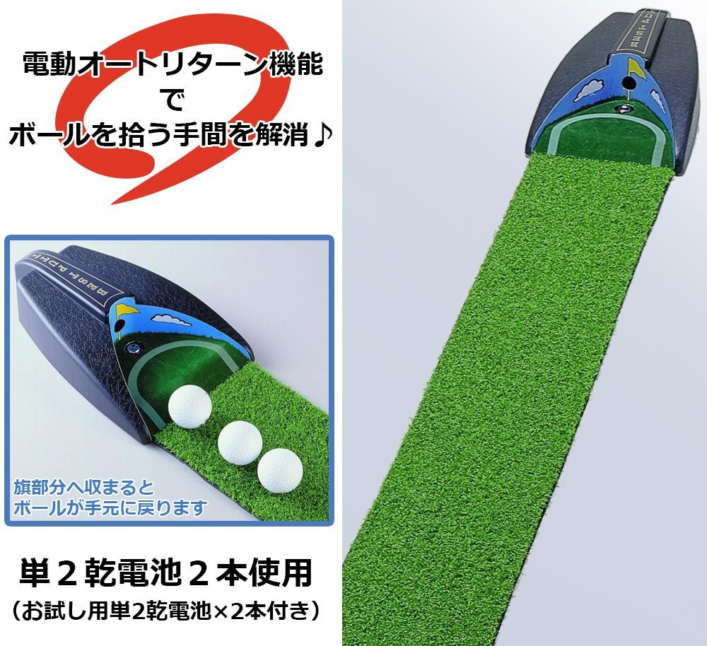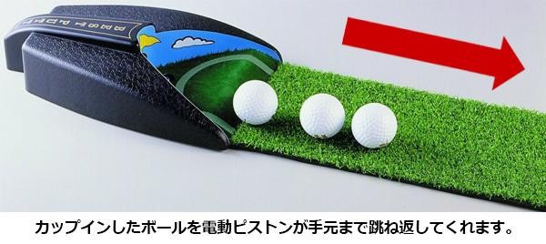 | カップインしたボールを自動で手元まで跳ね返してくれるパター練習マット!!ボールを拾う手間が解消され大変便利です。細いマットなので集中力が養われる他、ヘッドをまっすぐ引いてまっすぐ出すという正しいストロークの練習に最適です。 |