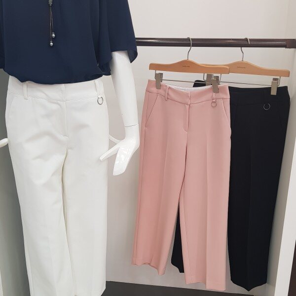 일자 와이드핏으로 앞오링 장식으로포인트를준 바지