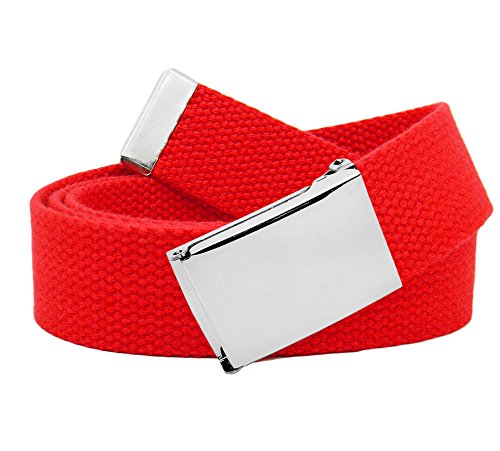 Binding : Apparel Product Description Build A Belt's classic silver flip top style buckle comes with any color web belt in sizes up to XL in youth. This buckle is standard military width, 1.25" wide, flip-top clamp style, which are easy to use and won't slide out. These buckles are easy for kids to use, and are great for school uniforms. This buckle is nickle polish and is not hypoallergenic. All of the buckles are interchangeable, you can change the belt out and replace with any 1.25" web belt. The canvas web belt is resizeable, and can be removed from the buckle. The belt can be easily cut, and then the end burned. Belt comes with matching silver enamel tip on one end. For sizing larger than our XL, please order in the Men's listing. 0