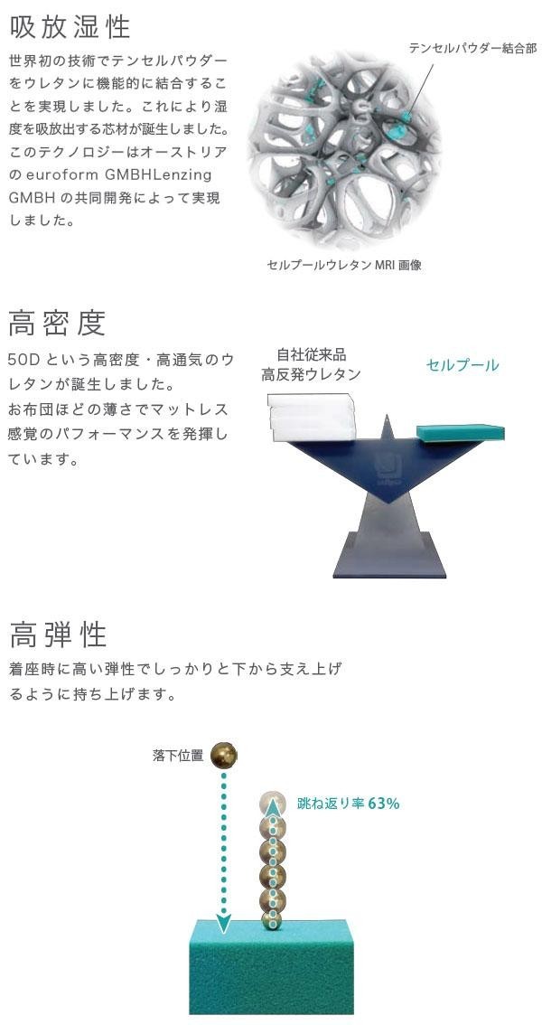 | ムレにくく、弾力性のあるヨーロッパ生まれの芯材セルプール。 |